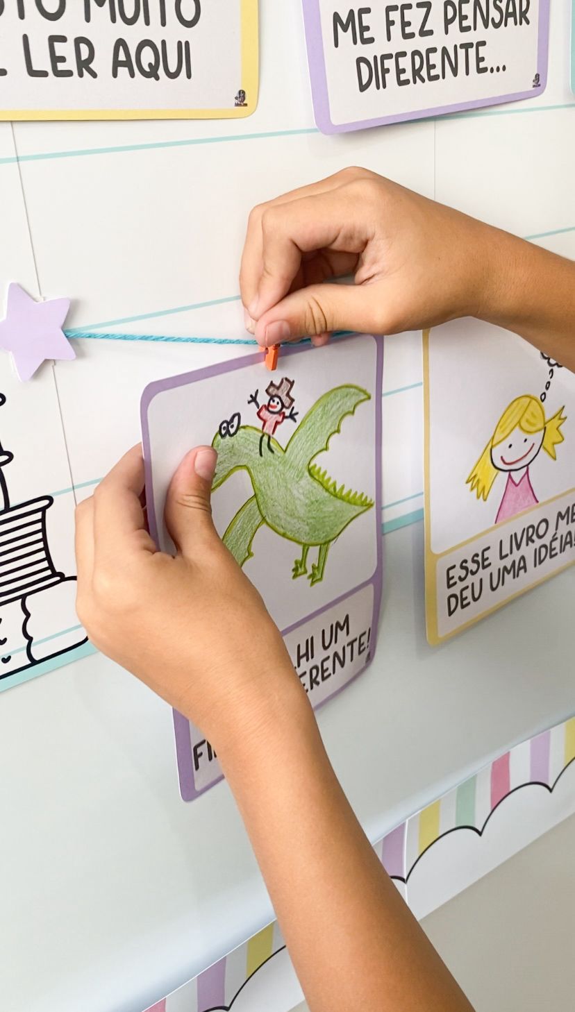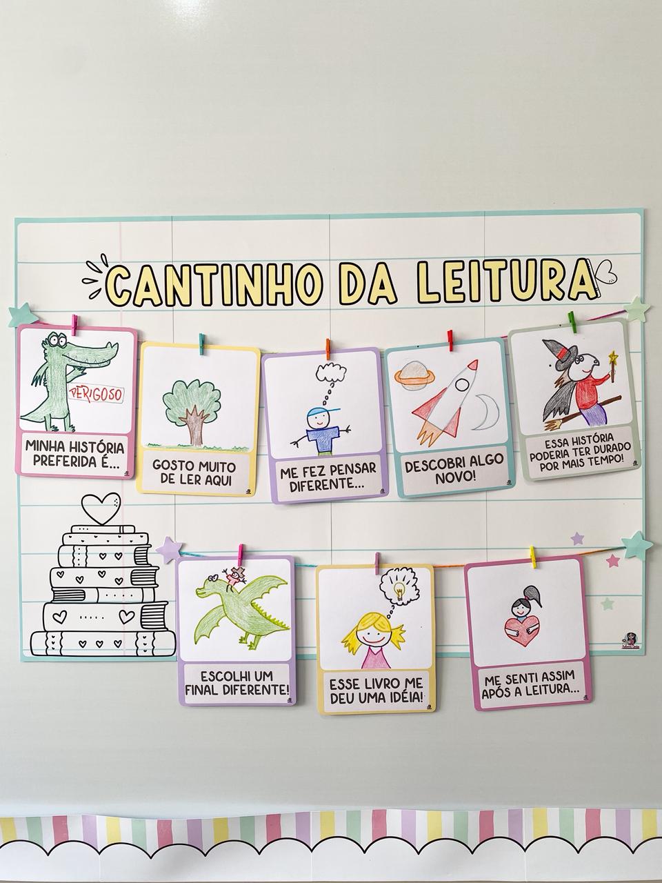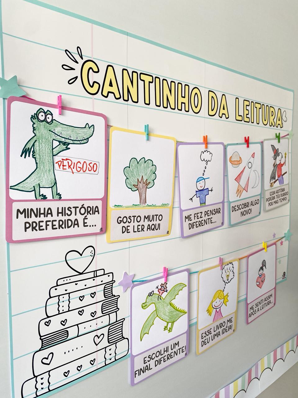 O Cantinho da Leitura Interativo foi pensado como um painel rotativo, onde as fichas são trocadas a cada grupo que passa pelo cantinho, permitindo que todas as crianças participem, registrem e compartilhem suas experiências com os livros.