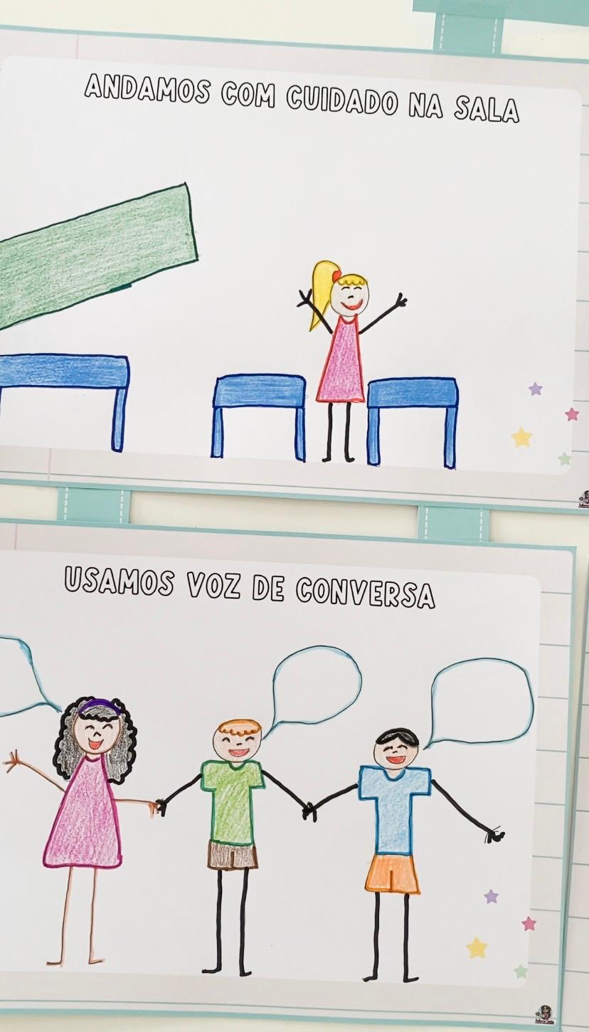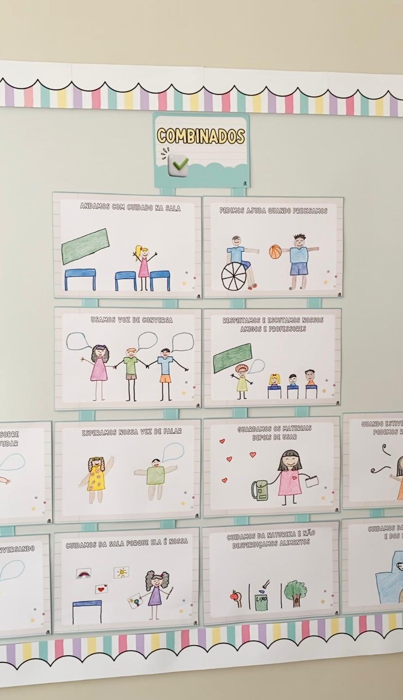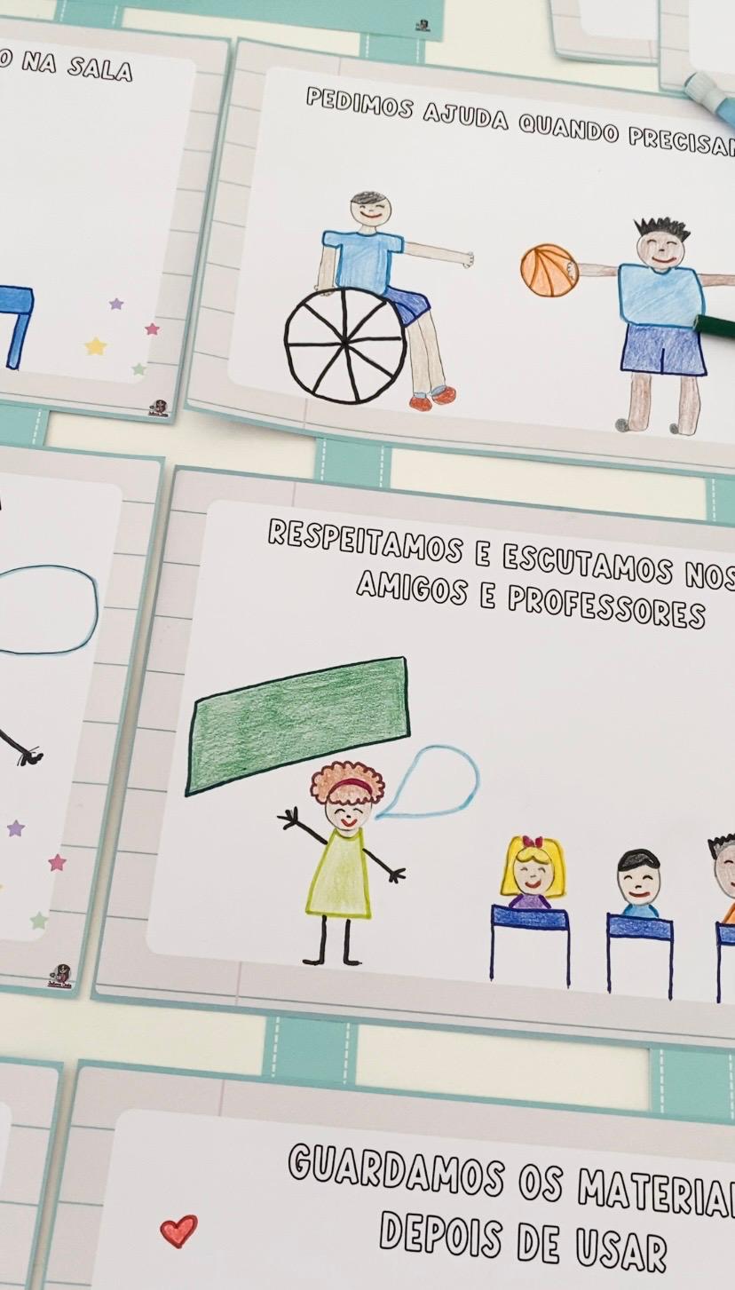 Ele foi pensado para que as ilustrações sejam feitas pelas próprias crianças, fortalecendo o pertencimento, a autoria e o sentido dos combinados no dia a dia.