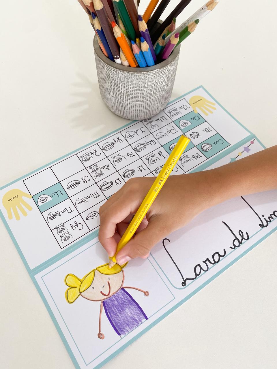 💛 Um crachá de mesa que ensina, acolhe e acompanha o processo de alfabetização com intencionalidade e protagonismo infantil.