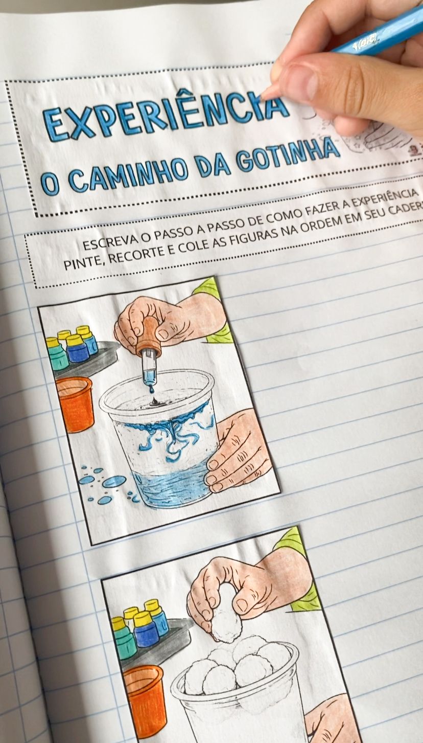 A atividade transforma um conceito simples em uma experiência concreta e visual, onde as crianças participam, observam e depois registram o que aconteceu.
