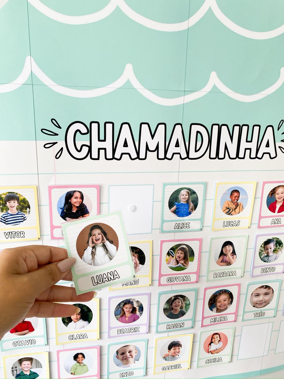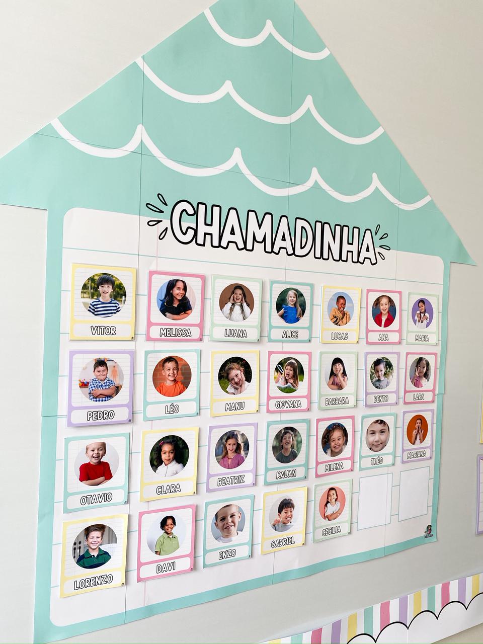 Identificação dos alunos e apoio à rotina, com visual claro e acessível.