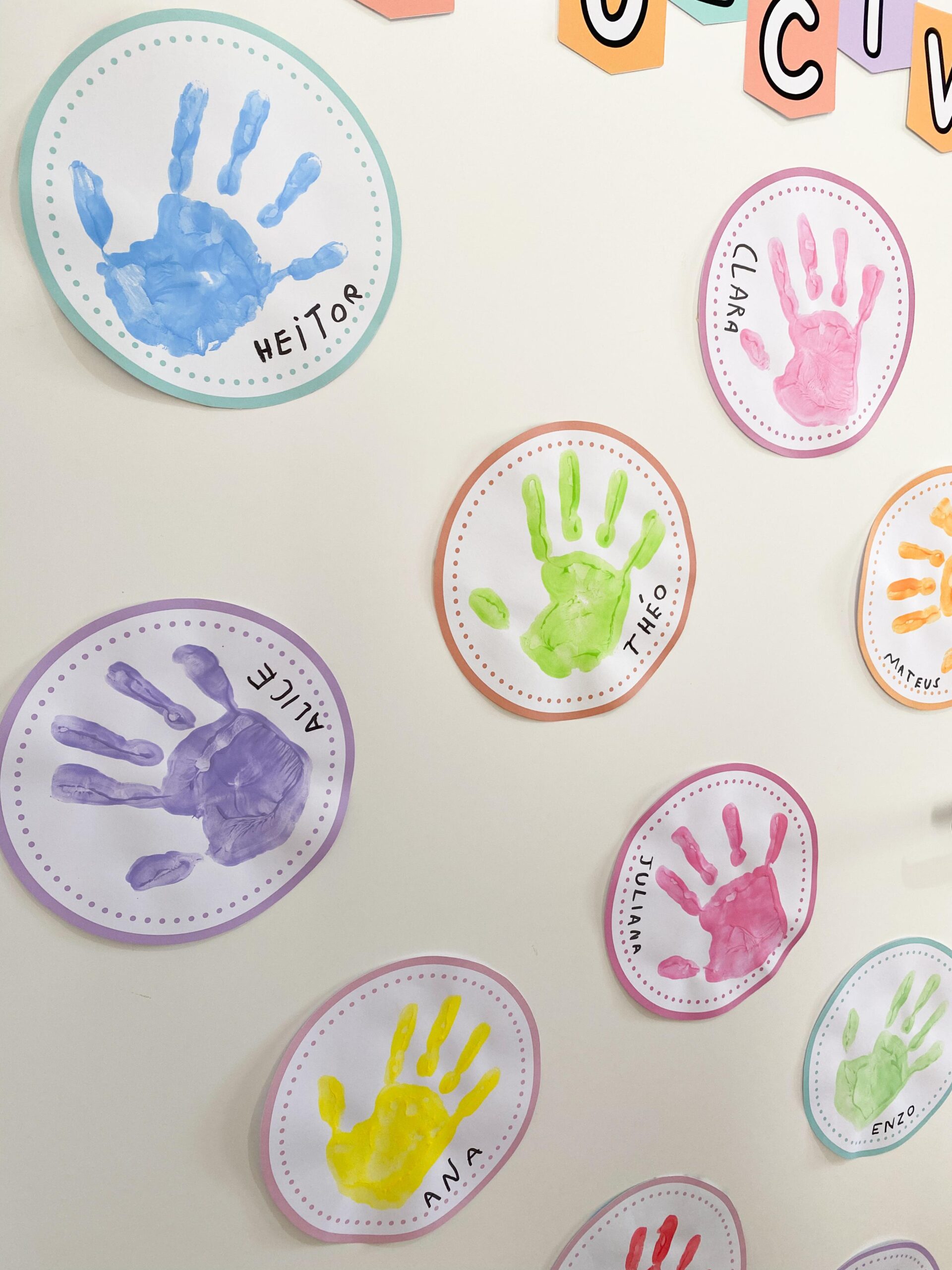 As crianças registram suas mãozinhas em moldes individuais e constroem juntas um painel coletivo que simboliza tudo o que viveram ao longo do ano: amizades, conquistas, aprendizados e momentos que ficarão guardados para sempre.
