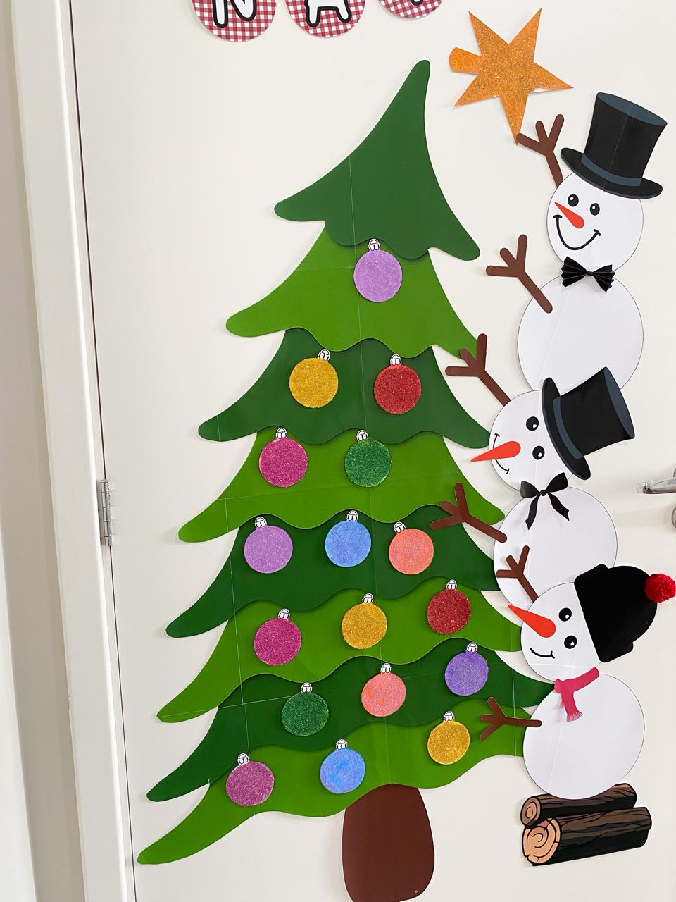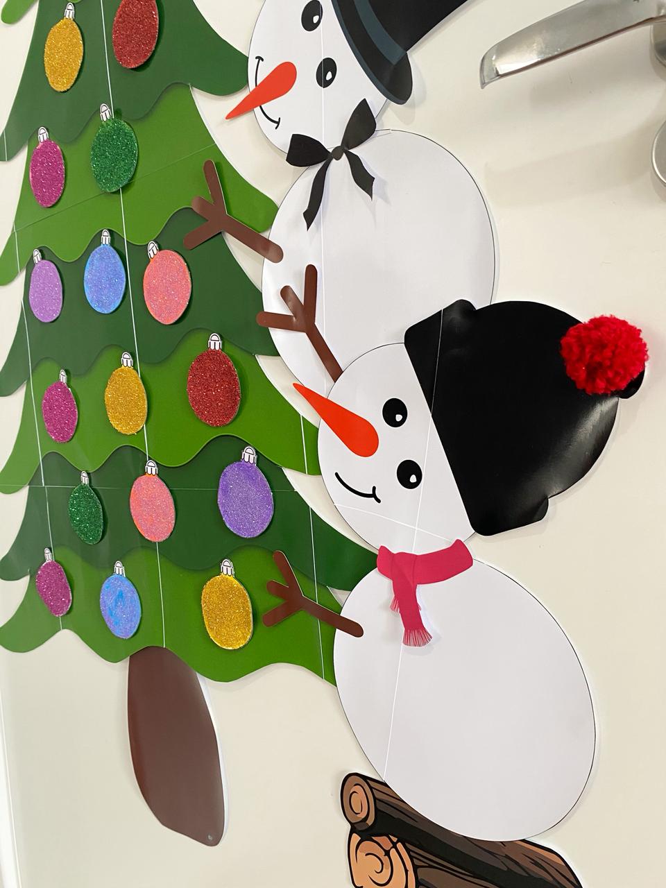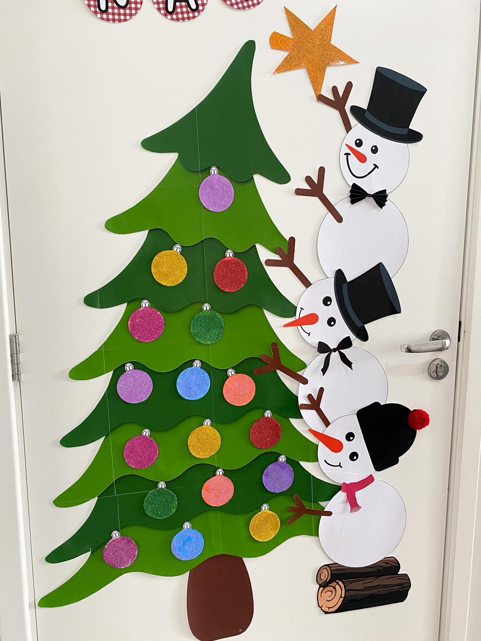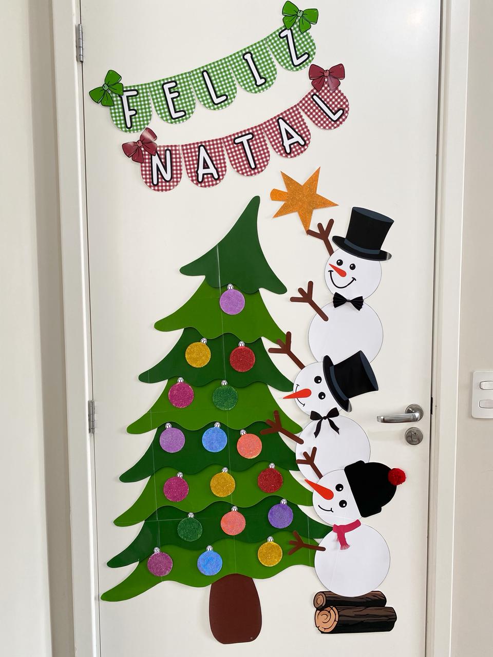 Um painel encantador para decorar a porta da sala ou o cantinho natalino com as crianças!